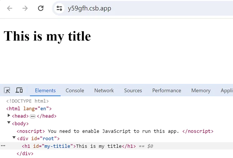 const reactElement = React.createElement( "h1", { id: "my-titile" }, "This is my title");4. 以建立好的 root 來將 React element 繪製成實際的 DOM element#