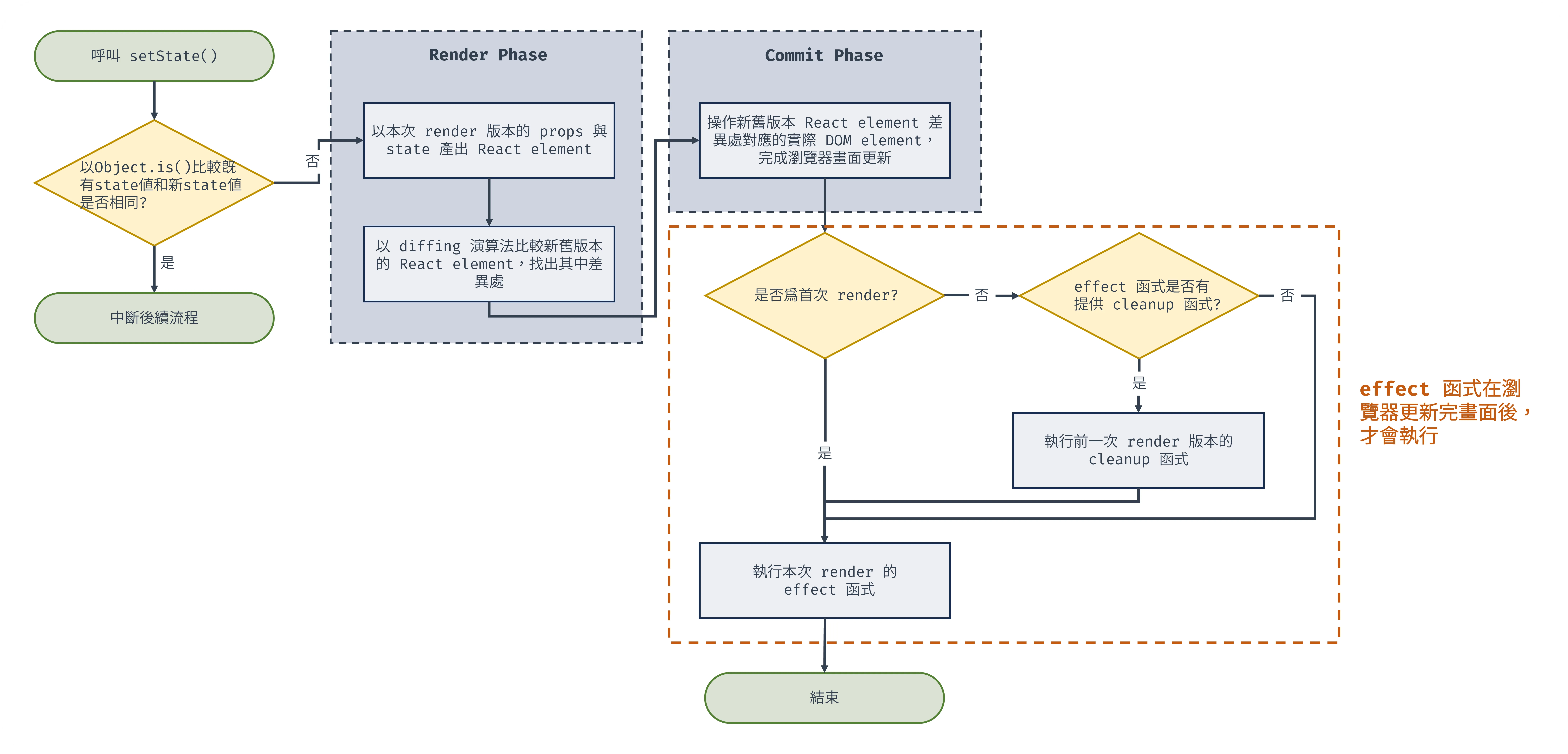 - 若所有項目相同:可安全跳過本次 render 的副作用處理