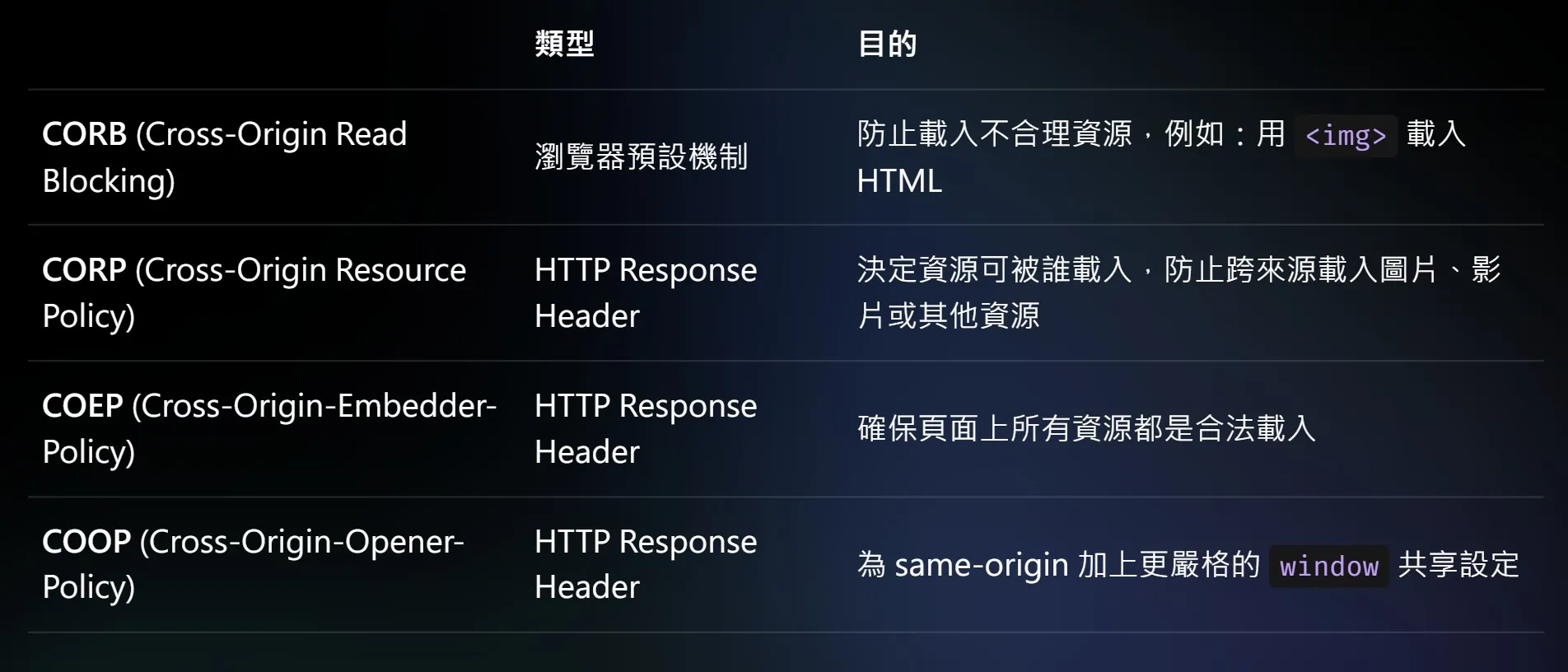 接著先來看看 COEP(Cross-Origin-Embedder-Policy)和 COOP(Cross-Origin-Opener-Policy)是什麼吧~